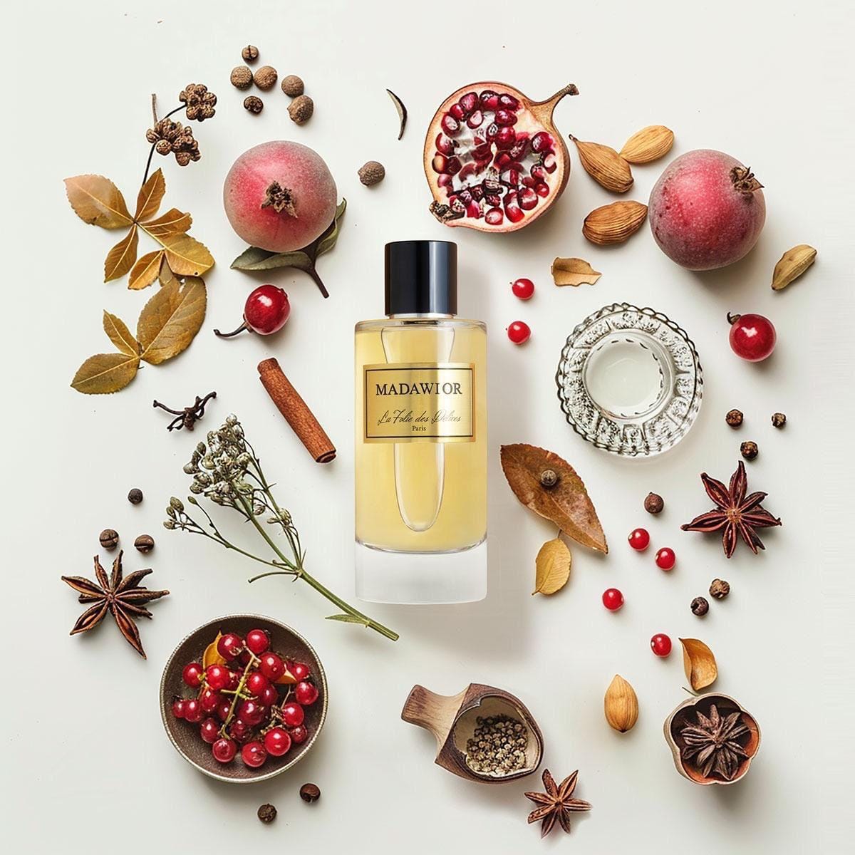 Ce parfum incarne une symphonie enivrante de notes exotiques et gourmandes. L'accord initial de cardamome et d'arômes de fruits rouges créé une ouverture captivante, évoquant la fraîcheur des épices associée à la douceur des baies mûres.