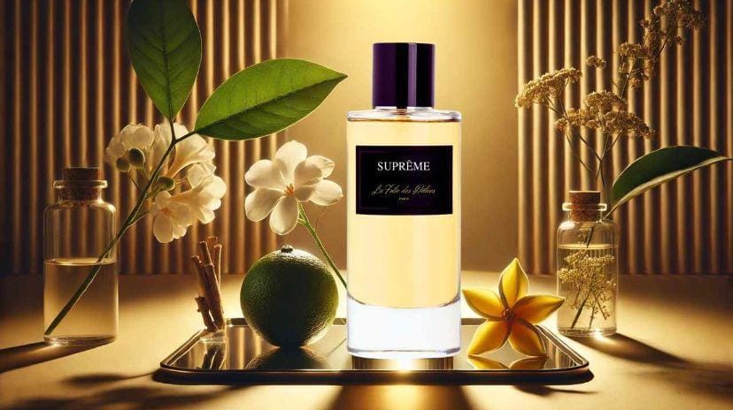 Supreme , l'éclat rayonnant d'un bouquet de fleurs blanches tempéré par la vibration d'un accord bois ambré.